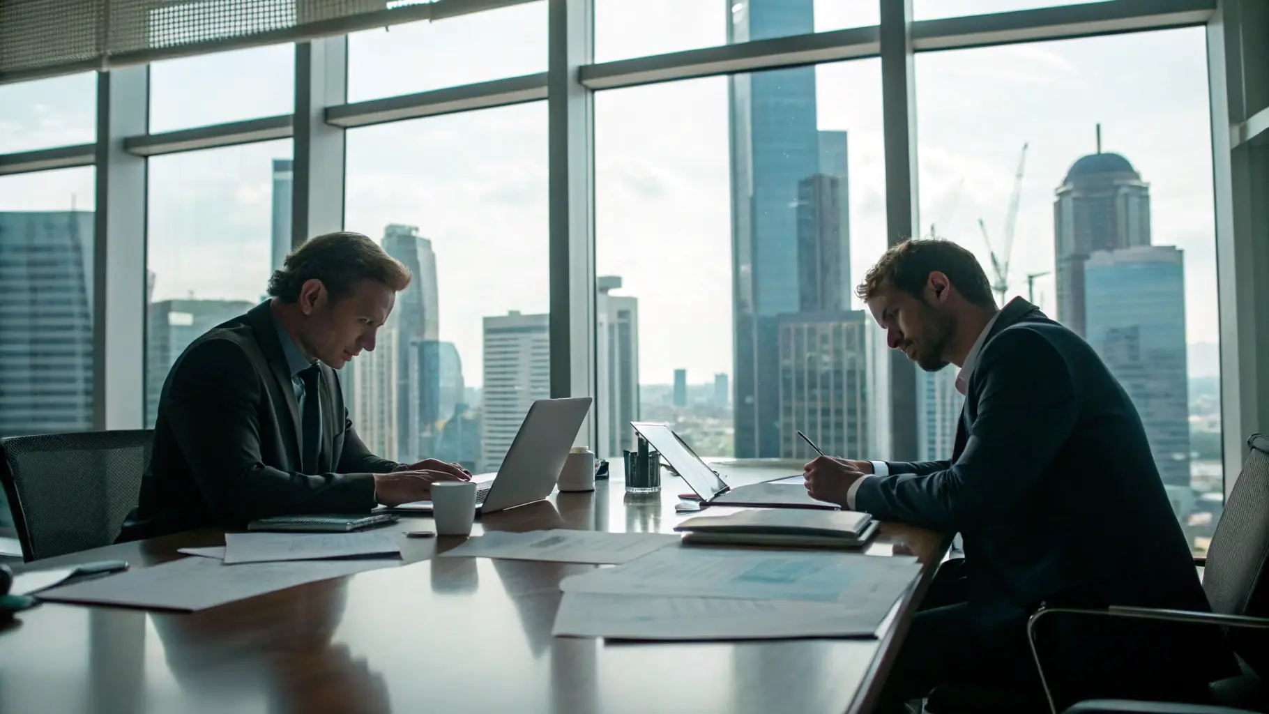 An image depicting a modern car rental office with employees assisting customers, highlighting the operational efficiency that can be achieved through strategic funding.
