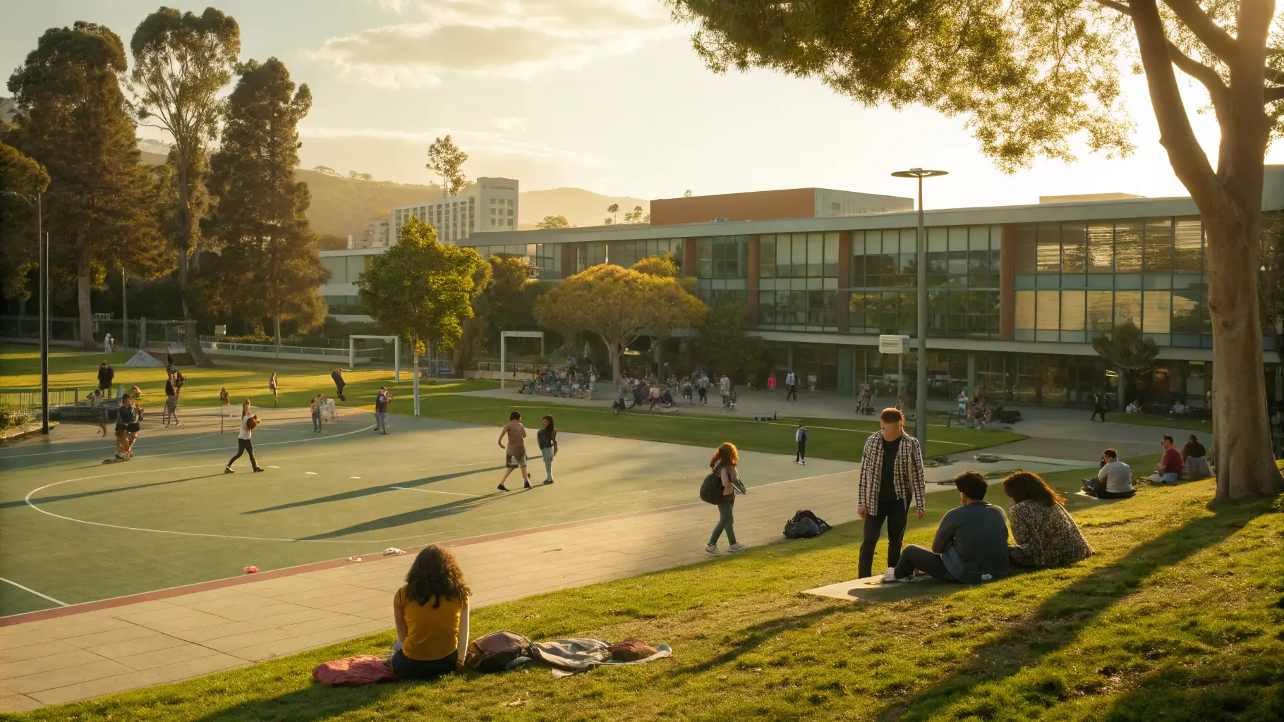 A modern school building with solar panels on the roof, representing sustainable and forward-thinking funding solutions for educational institutions.